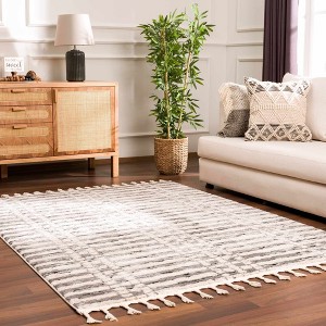 Collection:NavaColors:Beige, BlackConstruction:Machine WovenMaterial:100% PolypropylenePile:High PilePile Height:0.74"Styles:ScandinavianBacking:JuteMade In:TurkeyThickness:0.86"Fringe Length:1.6"