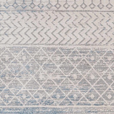 Collection:TambacColors:Blue, Gray, Light GrayConstruction:Machine WovenMaterial:100% PolyesterPile:Low PilePile Height:0.12"Styles:Transitional,BohemianMachine Washable:YesMade In:TurkeyThickness:0.16"