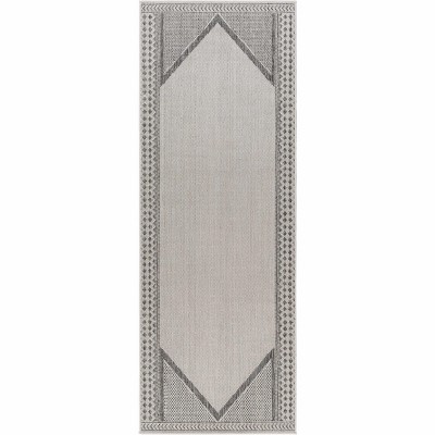 Collection: Asif. Colors: Off White, Charcoal, Medium Gray, Light Gray. Construction: Machine Woven. Material: 100% Polypropylene. Pile: No Pile. Styles: Transitional,Bohemian. Outdoor Safe: Yes. Made In: Turkey. Thickness: 0.2".