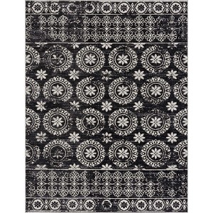 About:The durability and washability of the Kahramankazan Washable Area Rug is the perfect detail for pets in your home. This rug with a white floral pattern can steal your heart.Collection:KahramankazanColors:Black, Gray, Light GrayConstruction:Machine WovenMaterial:100% PolyesterPile:Low PilePile Height:0.12"Styles:TraditionalMachine Washable:YesMade In:TurkeyThickness:0.16"