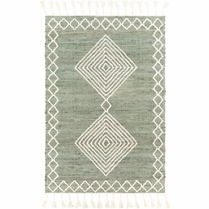 Collection:GuiuanColors:Cream, Medium GreenConstruction:Hand WovenMaterial:60% Jute, 40% WoolPile:No PileStyles:Transitional,BohemianMade In:IndiaThickness:0.31"Fringe Length:8.5"