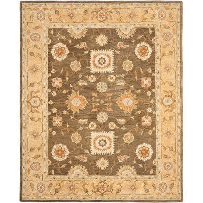 A: The area rug features a traditional style, enhancing the elegance of any room.