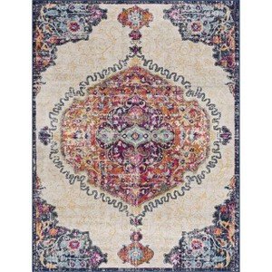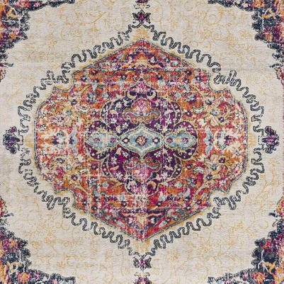 Collection: Tigris. Colors: Ivory, Fuchsia, Orange. Construction: Machine Made. Material: 100% Polypropylene. Pile: Medium Pile. Pile Height: 0.31". Styles: Traditional. Backing: Polyester. Made In: Turkey. Thickness: 0.35".