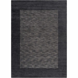 Hauteloom Bordered Solid Black Charcoal Wool Rug