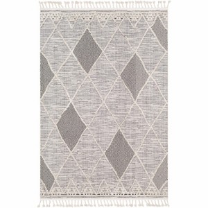 Collection:NorveltColors:Black, Ivory, GrayConstruction:Machine WovenMaterial:100% PolyesterPile:High PilePile Height:0.75"Styles:Transitional,BohemianMade In:TurkeyThickness:0.79"Fringe Length:4.3"