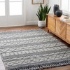 Collection:YukoColors:Charcoal, Blue, Off - WhiteConstruction:Hand WovenMaterial:100% Recycled PET YarnPile:Medium PilePile Height:0.25"Styles:Transitional,BohemianMade In:IndiaThickness:0.5"Fringe Length:3"