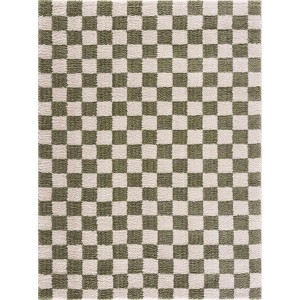 Hauteloom Canika Green Checkered Washable Plush Rug