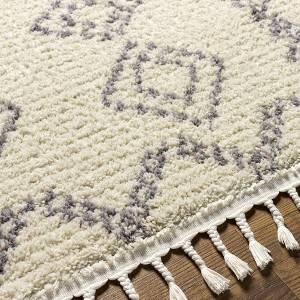 Collection: Jabonga. Colors: Light Peach, Gray, Medium Gray. Construction: Machine Woven. Material: 100% Polyester. Pile: High Pile. Pile Height: 0.67". Styles: Transitional,Bohemian. Made In: Turkey. Thickness: 0.79". Fringe Length: 4.6".