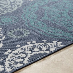 Collection:ReasnorColors:Teal, White, Navy, Pale BlueConstruction:Machine WovenMaterial:100% OlefinPile:No PileStyles:Transitional,TraditionalOutdoor Safe:YesMade In:EgyptThickness:0.16"