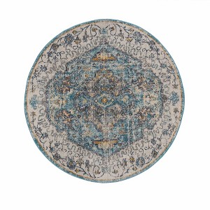 Collection: Tigris. Colors: Ivory, Blue, Aqua. Construction: Machine Made. Material: 100% Polypropylene. Pile: Medium Pile. Pile Height: 0.31". Styles: Traditional. Backing: Polyester. Made In: Turkey. Thickness: 0.35".