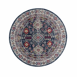 Collection: Tigris. Colors: Navy, Light Blue, Yellow, Orange, Pink, White. Construction: Machine Made. Material: 100% Polypropylene. Pile: Medium Pile. Pile Height: 0.31". Styles: Traditional. Backing: Polyester. Made In: Turkey. Thickness: 0.35".