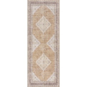 Collection:AlbasColors:Light Brown, Dark Brown, Light BlueConstruction:Machine WovenMaterial:100% PolyesterPile:Medium PilePile Height:0.31"Styles:Traditional VintageBacking:RubberMachine Washable:YesMade In:TurkeyThickness:0.39"