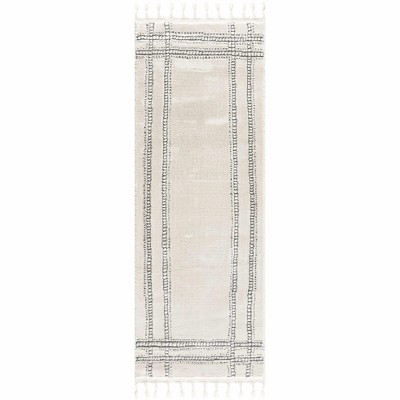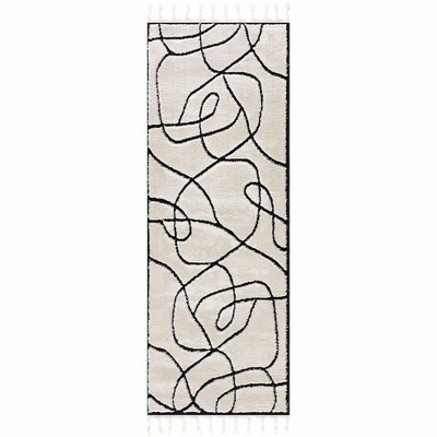 Collection:RiadColors:Beige, BlackConstruction:Machine WovenMaterial:100% PolypropylenePile:High PilePile Height:0.74"Styles:Modern GeometricBacking:JuteMade In:TurkeyThickness:0.86"Fringe Length:1.6"