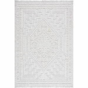Hauteloom Ivory Alya 3D Medallion Fringe Area Rug