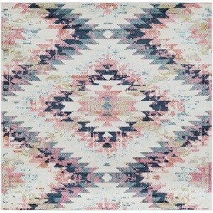 Collection: Lewisberry. Colors: White, Aqua, Teal, Light Brown, Navy, Beige. Construction: Machine Woven. Material: 100% Polypropylene. Pile: Low Pile. Pile Height: 0.11". Styles: Southwestern. Made In: Turkey. Thickness: 0.39".