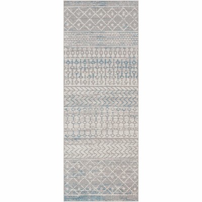 Collection:TambacColors:Blue, Gray, Light GrayConstruction:Machine WovenMaterial:100% PolyesterPile:Low PilePile Height:0.12"Styles:Transitional,BohemianMachine Washable:YesMade In:TurkeyThickness:0.16"