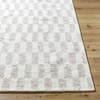 Collection: Theda. Colors: Light Silver, Off White, Ash. Construction: Hand Tufted. Material: 100% Wool. Pile: Medium Pile. Pile Height: 0.3". Styles: Contemporary. Backing: Cotton. Made In: India. Thickness: 0.5".