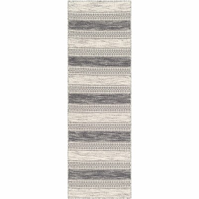 Collection:VernoniaColors:Black, IvoryConstruction:Hand WovenMaterial:100% WoolPile:No PileStyles:Transitional,BohemianMade In:IndiaThickness:0.4"