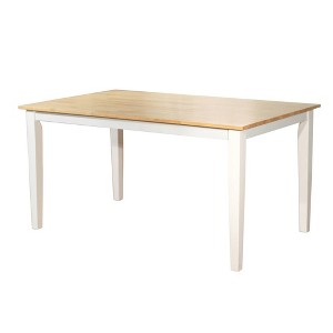 - Natural finish table top with white finish legs