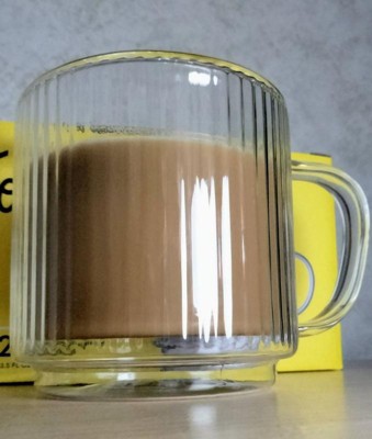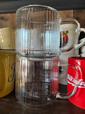 Haven Fluted Stackable Double Wall Glass Mugs - 13.5 oz - Set of 2