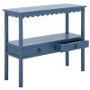 Elevate your space with the Haven Lower 2-Drawer Console in a warm blue finish. Designed with both style and functionality in mind, this console features two drawers perfect for keeping your essentials neatly organized. The lower profile drawers create an inviting and balanced look, ideal for complementing the other furniture. The blue wood finish adds a timeless touch, while the clean, modern lines enhance any room, from the entryway to the living room. With its versatile design, the Haven Lower 2-Drawer Console effortlessly blends beauty and practicality into your home.