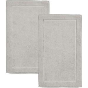 Hawmam Linen Ice Silver Bath Mats, Pack of 2-100% Ring Spun Cotton,[Not a Bathroom Rug] Banded Design, Highly Absorbent