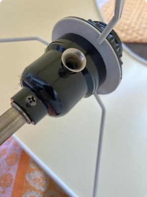Q: I bought this lamp in-store and need a replacement shade for it. None of the mix-and-match shades fit. The base of the lampshade is flat and screws onto the lamp base before the light bulb. What shade style goes with this?