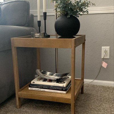 Hayes Solid Wood Rattan and Glass Top Side Table Brushed Light Brown - Nathan James