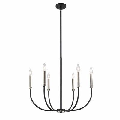 Add this bright two-tone one-light wall sconce to your favorite space for simple elegance. It's crafted in a classic matte black and brushed nickel finish with the light in a candle-like design. It's a gorgeous understated design perfect for the bathroom, powder room, hallway, or bedroom. Bathroom/Powder Room/Bedroom/Hallway Dimmable: Yes Material: Steel, Finish Color: Matte Black/Brushed Nickel, Width: 5.25", Height: 12.5", Length: 5.5", Depth: 5.5", Backplate Width: 5.25", Backplate Length: 5.25", Lamping Type: Incandescent, Number Of Bulbs: 1, Wattage: 60 Watts, Dimmable: Yes, Moisture Rating: Dry Rated