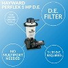 The Hayward Perflex D.E. Filter Pump System is a high-performance filtration system designed for residential and commercial swimming pools. This system includes a 1.5 horsepower pump and a Perflex extended-cycle D.E. filter, which uses diatomaceous earth (D.E.) to provide superior water clarity and cleanliness. The filter's Flex-Tube design enhances efficiency by allowing for longer periods between backwashing, which saves time and reduces water loss. The system's heavy-duty, corrosion-proof tank is made of durable materials that withstand harsh outdoor conditions, ensuring long-lasting performance. Its simple installation and easy-to-use design make maintenance and operation a breeze. Choose the Hayward Perflex D.E. Filter Pump System for a reliable and effective pool filtration solution.INCLUDES: The Hayward Perflex Above-Ground Pool Filter System includes an EC50AC filter with clamp, a 1.5 HP PowerFlo Matrix Pump, a modular platform base, a union connection and a 1 1⁄2" hose packageQUICKER CLEAN: Removes even the smallest particles the first time through for a quicker cleanDEPENDABLE AND WON'T CORRODE: Heavy-duty Injection-molded filter tank delivers dependable, corrosion-free performanceSPARKLING WATER: Flex-Tube design that works in combination with diatomaceous earth filter media to produce the clearest, most sparkling water possible