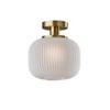 Add an elegant touch of mid-century design to your space with the Hazel flush mount light. As this light is damp location rated, it is the perfect addition to bathrooms, kitchens, and covered outdoor areas that frequently experience moisture. A cylindrical frosted ribbed glass shade emits a soft ambient glow from a 100W bulb, while the 5" diameter base in an antique brass finish adds to the clean, modern design. Complete your décor with the coordinating Hazel pendant light, floor lamp, and table lamp.