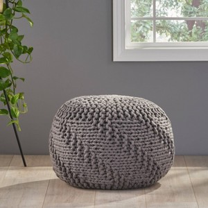 This Christopher Knight Home Hazel Pouf Ottoman with its dark variant, draws attention to any arrangement with its cool monochromatic color and dramatic style of stitching. An accommodating surface tone encourages versatile household placement, while interwoven surface strands exhibit an intricate hand knit design that refines the essence of this boastful pouf's aesthetic. Put your feet up after a long day or use as extra seating with this Christopher Knight Home Hazel Pouf Ottoman the possibilities are endless. A must have purchase!