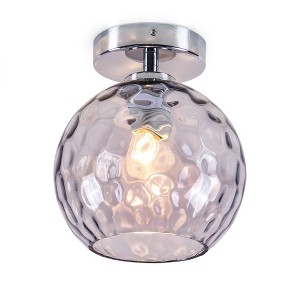 Elevate your interior with this 7.8" modern semi-flush mount ceiling light, featuring a hand-hammered smoky grey glass globe and a sleek chrome canopy. Its compact design fits perfectly in hallways, bedrooms, entryways, and kitchens, delivering both style and soft ambient lighting. UL certified for safety and compatible with E26 bulbs up to 60W, this fixture combines artistic texture with everyday functionality.