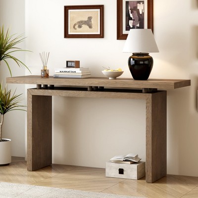 MOEPISY 52 Inch Wood Console Table with Curved Edge, Natural Texture, Natural