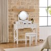 - Quality & Safe Construction for Long-Lasting Use: The vanity desk and stool are constructed with solid wood legs and non-slip foot pads, ensuring reliable stability and durability. The included anti-tipping device allows you to secure the table to the wall, providing added safety for families with kids and pets.