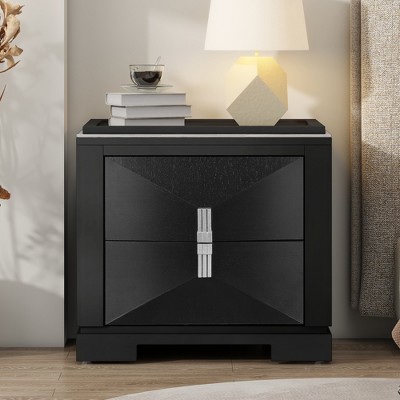 MOEPISY Mid Century Vintage Nightstand with Silver Glitter Strip Decor and Metal Legs, Beige