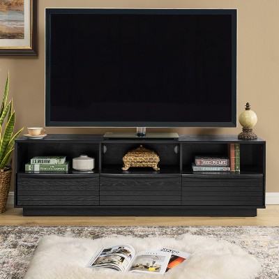 [Suit for TVs up to 80‘’] Our TV stand mereasures 70.8'' L x 15.7'' W x 19.6'' H and this TV cabinet is suitable for TVs up to 80'' and can match most TVs on the market.