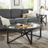 - Anti-Scratch Design: The edge of the modern glass coffee table adopts an elegant curve design to prevent scratches, and the round tabletop design prevents bumps and injuries, especially suitable for your children. The coffee table's solid poplar frame supports a tempered glass top, creating a clean, open look.