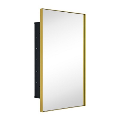 Enhance your bathroom's functionality and style with the Head West Mirror's black metal recessed medicine cabinet mirror. This modern and sleek bathroom medicine cabinet combines storage and elegance, making it a perfect addition to any contemporary bathroom. With its recessed design, this bathroom mirror cabinet for over the sink blends effortlessly into the wall, providing a clean and uncluttered look.