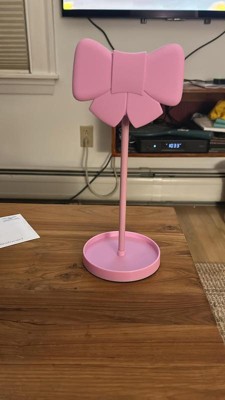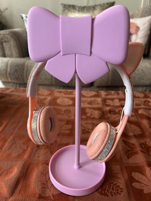 This headphone stand is so cute. It’s the perfect size. My daughter is obsessed with bows and loves this stand. Fits her headphones perfectly. Really pretty pink color. Sturdy and well made. Perfect addition to her room.
