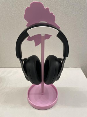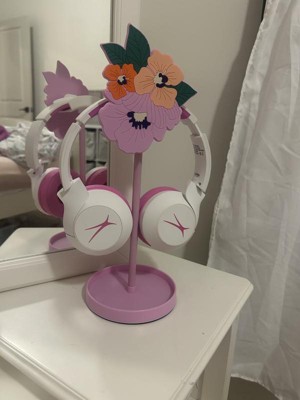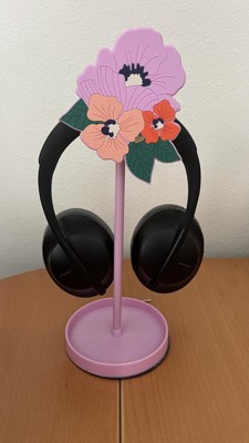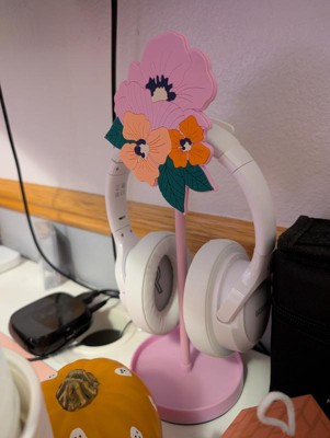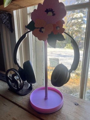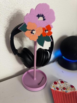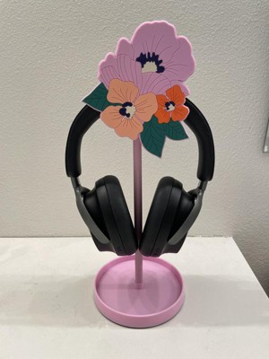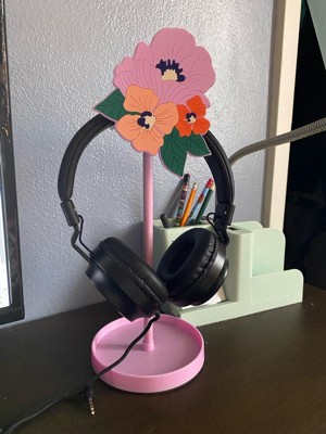 This headphone stand perfectly matched my daughter's desk vibe. It’s surprisingly sturdy for how delicate it looks. It holds larger over-ear headphones without tipping over at all. From the front, the flower hides the part of the stand that holds your headphones. The wide bottom of the tray which helps balance everything is also useful to hold items. If you want something functional that also doubles as decor, this is it.