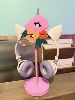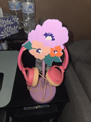My daughter loves this adorable headphone stand! It matches the floral decor in her room perfectly with the various shades of pink. It does not take up much space and looks like decor. I like that it is a designated place for her headphones so they do not get left around the house. It was so easy to assemble, she was able to do it herself! Easy to disassemble as well if it needs to be put up for any reason. Definitely recommend for any girlie!
