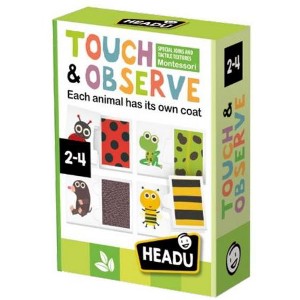 The Headu Touch & Observe is an engaging tactile puzzle designed for children aged 2 to 4. Inspired by the Montessori method, this educational game includes 9 pieces with various textures that allow children to explore touch while matching objects to corresponding images. It promotes sensory development, hand-eye coordination, and logical thinking, making it perfect for early learning through interactive play.