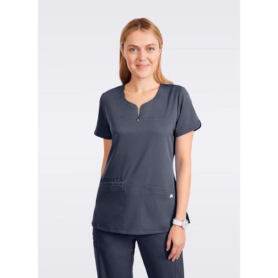 HEAL+WEAR Women's V-Neck Stretch Medical Scrub Top with 2 Utility Pockets- 4-Way Stretch-Pewter-XL