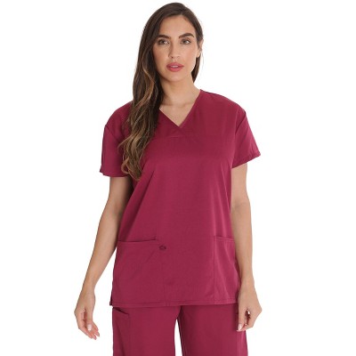 HEAL+WEAR Womens V-Neck Scrub Top(Top Only) with Utility Pockets – Soft Stretch Nursing Shirt for Healthcare Workers - 4-Way Stretch-Red-S