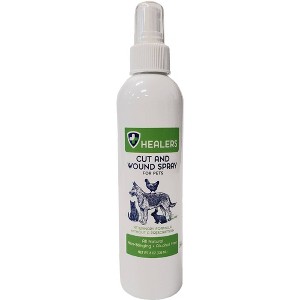 Veterinary Formulated by Dr. Eric Witherspoon, DVM The ONLY wound care product you ever need! A rapid-acting, easily applied, non-messy, and non-greasy healing solution that utilizes nature’s best remedies: tea tree oil, comfrey, myrrh, aloe vera, and goldenseal. Healers Cut and Wound Spray for Pets offers first aid treatment for open wounds, lacerations, cuts, mouth sores, punctures, abscesses, and other skin and underlying dermal tissues injuries. Its liquid form rapidly covers the impacted area without thickly coating like an ointment, a process that essentially slows healing by blocking rapid cell growth. Our solution does not occupy the space, enabling new tissue growth and promoting healing. Cut and Wound Spray for Pets works wonders on all types of skin injuries and, just as importantly, does not sting the animal in any way. For open wounds, punctures and lacerations.