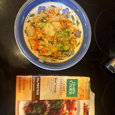 Enjoy satisfying and quick meals with Healthy Choice Café Steamers Beef Teriyaki. This frozen meal combines tender beef strips with rice, carrots, broccoli and water chestnuts in a sweet teriyaki sauce for a delicious and convenient premade meal. Made with no preservatives, this tasty frozen beef teriyaki provides a wholesome microwave meal full of flavor. Perfect for prepared meals at work or an easy frozen dinner option at home after a long day, keep this delicious Asian dish in your freezer to always have healthy meals on hand. Healthy Choice never compromises on ingredients so you can taste the goodness in every bite.