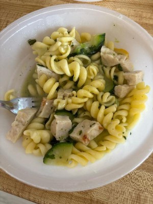 We have been buying this chicken pesto pasta for years and we loved it. It was a perfect little midnight snack that didn’t pack on the calories or the perfect meal if we didn’t want to cook for dinner. It was very tasty. That is no longer true this month we ordered two of these to keep on our freezer for the perfect occasion. We were disappointed to find that they have changed the chicken. The chicken used to be strips of real grilled chicken. Very tasty! Very satisfying! They have replaced the natural chicken with processed chicken cubes. They are basically the inside of a McDonald’s chicken nugget without the fried breading outside of it. The texture and flavor are horrible! We are incredibly disappointed! Our hope is this has something to do with the lack of chicken in America currently. We are hopeful that they will return to the real grilled chicken strips that we have grown to love over the years. Until then we are not buying this frozen dinner any longer.