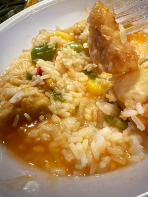 - Made with no preservatives, this healthy microwave meal is served over a bed of rice and topped with a sweet and sour sauce