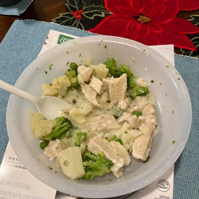 It's great macros wise. And hard to beat the convenience factor. I am a little disappointed in the sauce. It's relatively flavorless and I'm not getting any pesto vibes at allllll from it. The fiber is pretty good and the protein is great for such a low calorie meal. Despite being so low calorie I find it very filling especially for a lunch. I'd much rather go with the chicken and broccoli alfredo for flavor... but the peas and cauliflower is a nice change of pace texture wise.